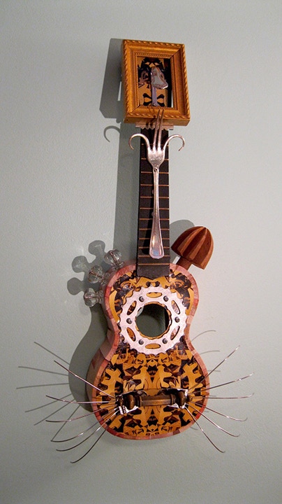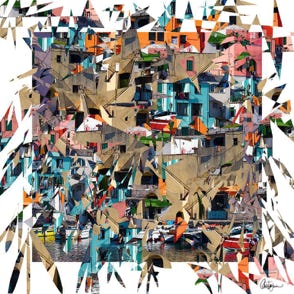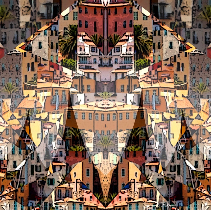I like to work with bright colors to draw shapes often symmetrical or exploded with varied textures. My inspiration comes from the nature and the city to create abstractions and collages using different processes. My sculptures are 3D collages designed like visual poems."